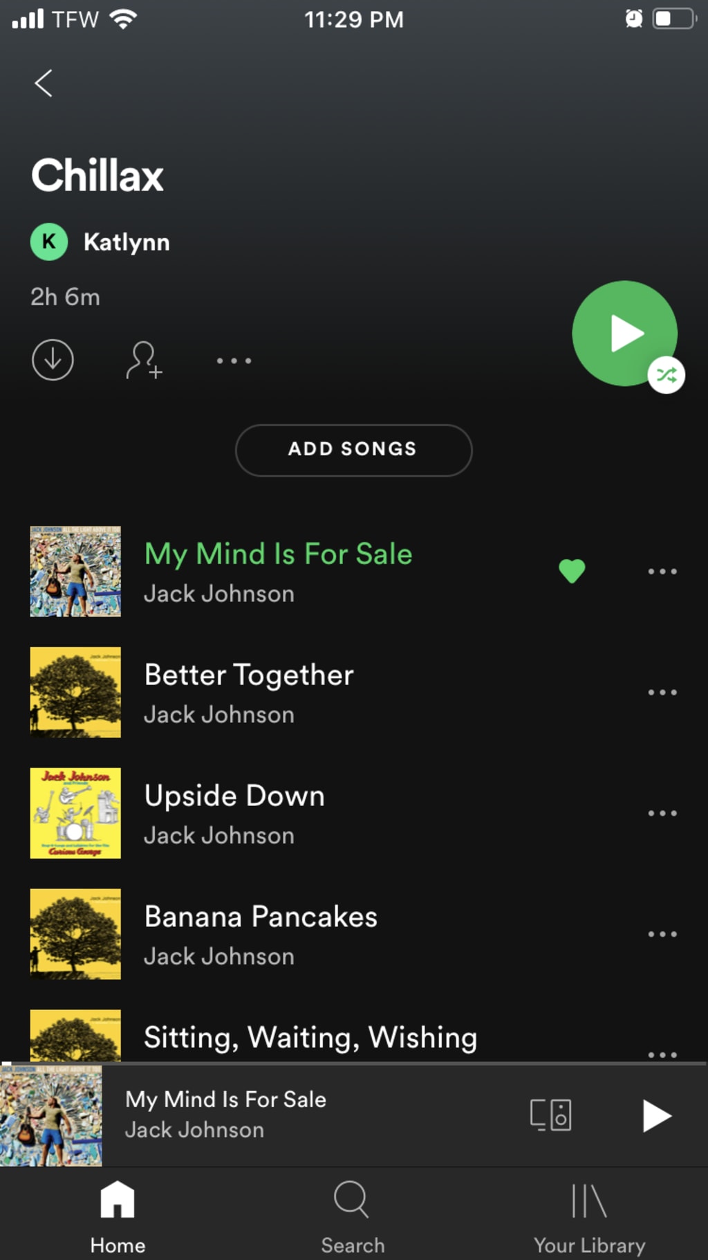 A lot of the songs on this playlist of mine are by the artist Jack Johnson. I have yet to hear a song by him that I don’t absolutely love. His music is upbeat but soft at the same time and it has never disappointed me. His music works for me good mood or bad. A lot of his songs are about love which I adore. “Banana Pancakes” is probably my favorite because who doesn’t want to make banana pancakes and pretend like it’s the weekend? That just sounds like heaven to me.