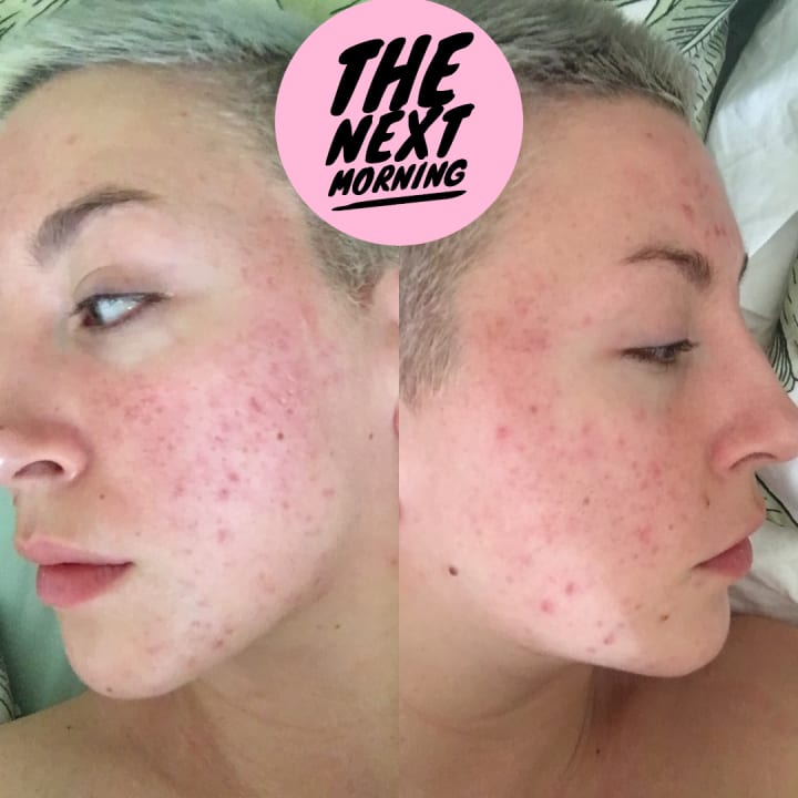 Now, I knew in my head that this is just my skin extremely swollen from the microneedling, but to me this was a 100% improvement, to the people who are going to try this, I'm sorry Linda but it wont last. Your skin is having a reaction and the collagen is beginning to wake up. My skin felt pretty grainy at this point which is a common side effect, and I made sure to cream it up right nice to treat it to some much needed moisture.