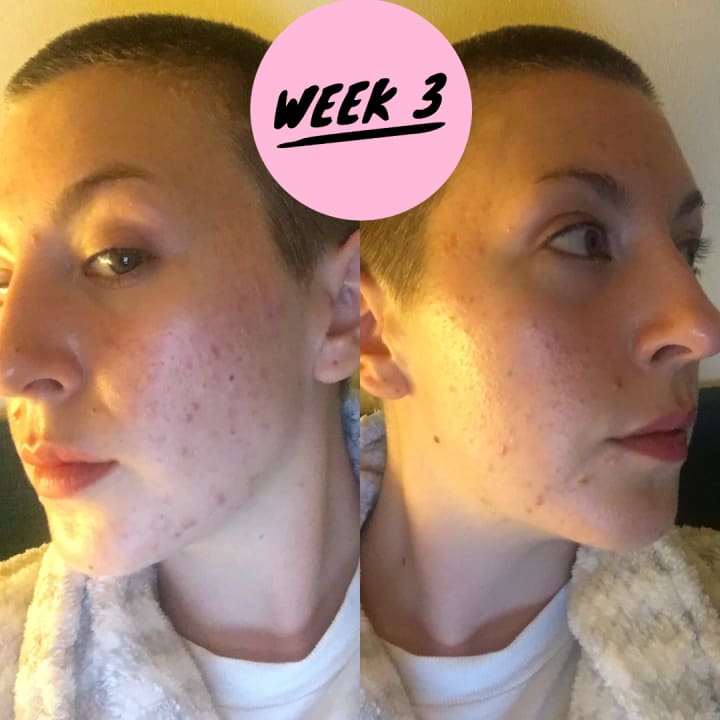 Finally after a week and a little into week 2 I started to see significant improvement, my skin felt super tight so I made sure again to keep up with face masks and moisturisers and not to over cleanse. I had no new breakouts although everything was still a little red. my raised bumps and pits I felt were slightly improved though it may have been my imagination.