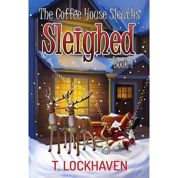 3. Sleighed: Within the beach town that the owners of a coffee house live, there is a Santa union that George is apart of. He becomes upset when he is replaced from being the mall Santa by a man named Drew who doesn't take the job as seriously as he does. He keeps his Santa suit in a trash bag and doesn't respond to the kid's Santa mail. The coffee house sleuths investigate and figure out it is because the owner of the mall was blackmailed into hiring Drew for the job. He used a female friend of his to seduce the married man. When Drew is found dead in George's yard, everyone believes he is the one who killed him when George is finally found fending of the killer beside the beach.