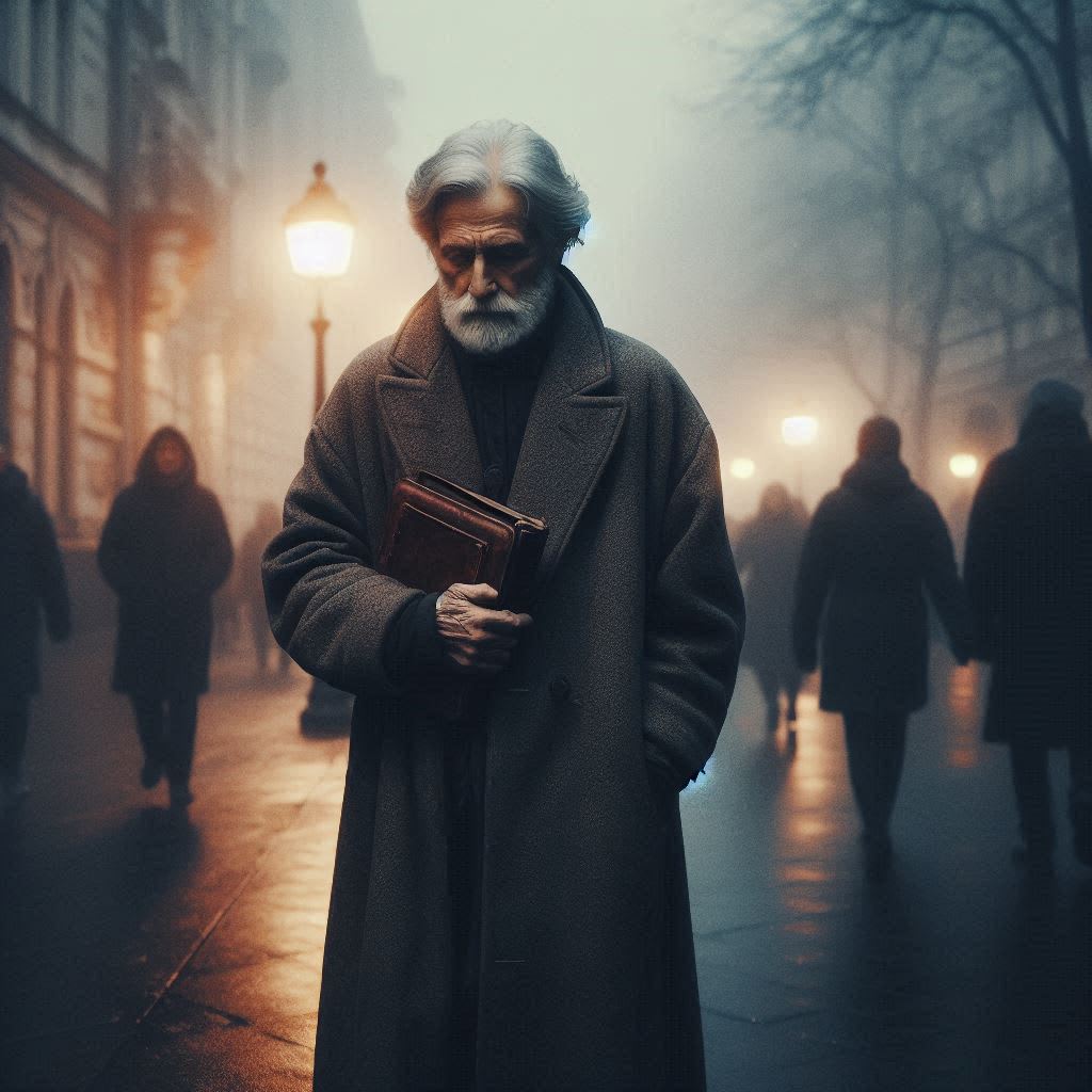 Every morning, he left his quiet apartment on the top floor of an aging brick building in the heart of the city, a city that never stopped humming. With a wool coat too big for his shoulders and a little leather notebook always in his hands, he drifted through the crowd like smoke—seen by many, remembered by none.