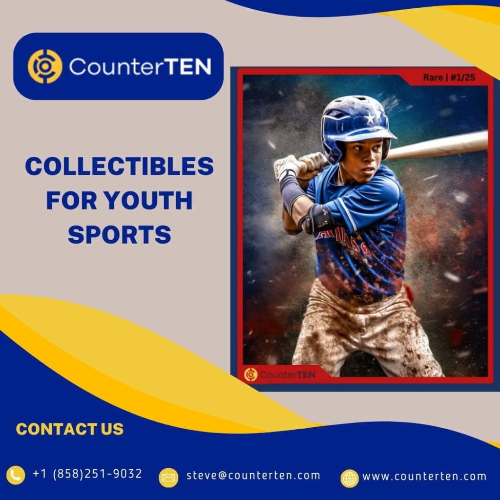 Collectibles For Youth Sports - Counterten is an online platform specifically for the young athlete to showcase their accomplishments, including their digital rookie cards. We provide these cards collectibles for youth sports because its a modern and innovative way to celebrate and recognize the achievements of young athletes. We use a graphic design software or online tool to create a visually appealing card with the athlete's picture and relevant information. You can share it on social media platforms or through email to friends, family, and supporters of the athlete.