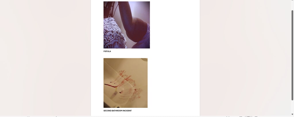 Once the bleeding stopped, they asked what I wanted to do and I said, "I want go to the ER". I was NOT taking any chances. But the trip was futile. By the time we got to the ER, my site had stopped bleeding and the doctor overseeing my case told me that there was nothing that needed to be done. I was discharged a few minutes later and called one of sisters to come pick me up to drop me back off at my apartments. She was LIVID, hating that I was discharged without anyone taking this incident as seriously as we are. I told the doctor everything, about my suspicions of infection, but he said that there was no sign of infection, so they didn't feel the need to keep me. Once my sister and I got to my apartment, she helped me clean up my bathroom. Blood was in the tub, on the floor, in the sink, on the door, freaking EVERYWHERE!!! She asked me if I wanted to stay at mom's apartment for the night. I wanted to say "yes", but I declined. I didn't want to burden them any more than I already had. Let's just say, I didn't sleep that night. The next incident, thankfully, happened at my mom's apartment, so at least I wasn't alone.