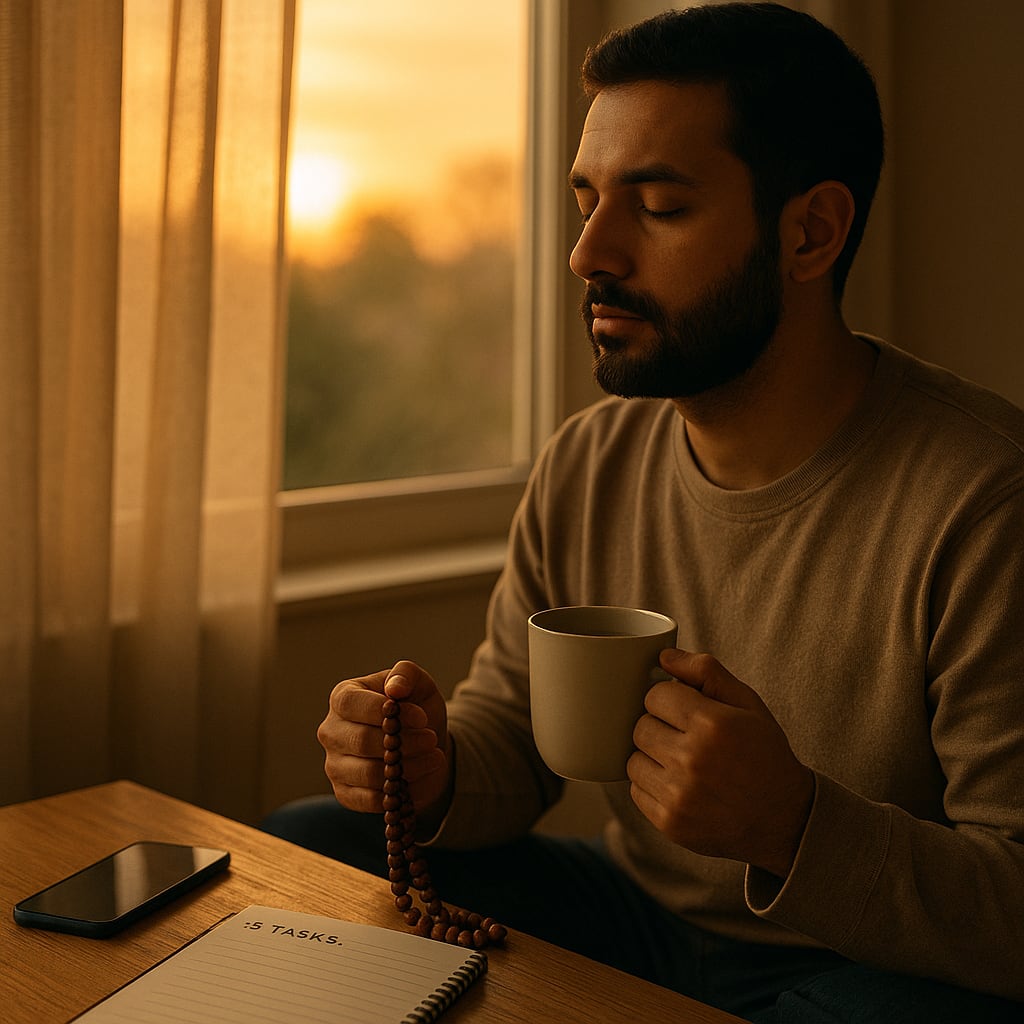 If you're a Muslim, start your day with Fajr prayer. If you're not, begin with a moment of silence, prayer, or meditation.