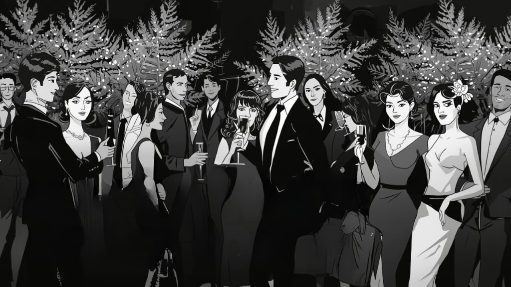 On the day of the event, everyone was adorned in their finest black and white outfits. And as they walked down the corridor to the large room where it was being held, they leisurely made their way along the ruby carpet, flanked by fern trees sparkling with glimmering white lights.
