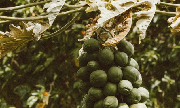 Skippy and Trista went and picked several more papayas, as many as they could hold and brought them over to the bunker entrance.