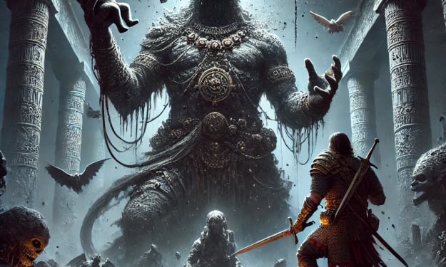 My infravision cut through the oppressive darkness of the dungeon’s corridors, revealing ghostly impressions of the past etched into the cold, ancient stone. Faint images of long-forgotten battles and whispered secrets shimmered briefly on the walls, guiding his cautious steps. Rounding a bend, I halted. Before me, under the pallid glow of eldritch light, stood Ohmer—the lich—guarding a dilapidated altar draped in rotting fabric. In the dim, flickering shadows, several jewels scattered across the altar caught my eye, their colors muted yet unmistakable.