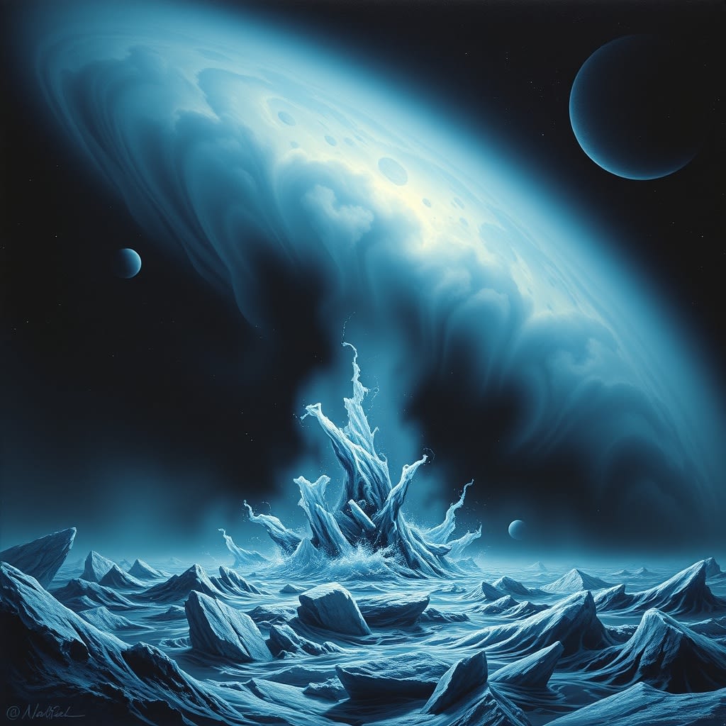 The Black Swell spread across the planet, moving with a speed that defied Neptune’s rotation and winds. More disturbingly, its growth seemed to disrupt the fabric of space around the planet. Light itself bent unnaturally, as if Neptune was warping space-time. The planet no longer reflected sunlight properly, and telescopic images became distorted, making Neptune appear as a swirling mass of darkness. It was as if Neptune had become a black mirror, reflecting nothing but emptiness back at the universe.