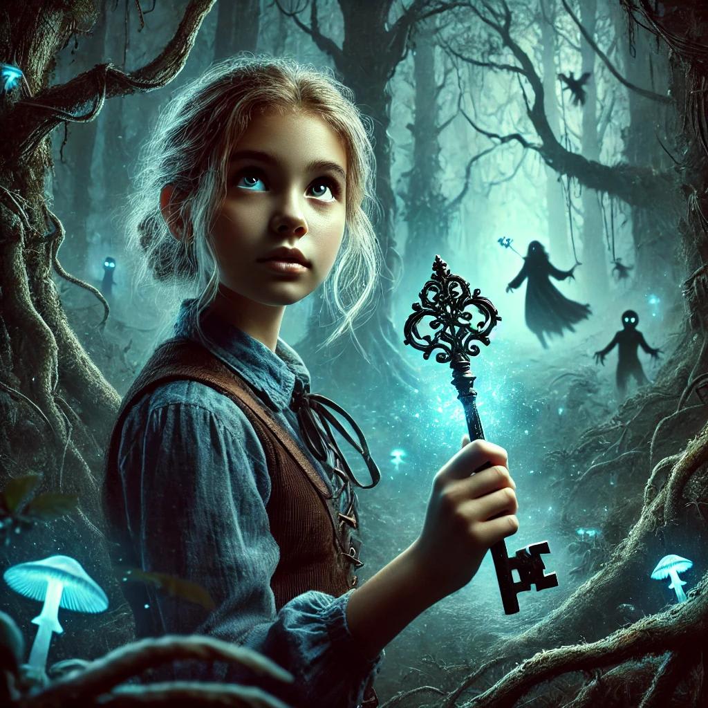 Deep within the heart of an ancient forest, hidden beneath a tangle of roots and whispers of forgotten legends, a young cartographer named Elara stumbles upon a strange artifact—a black, ornately carved key glowing faintly with an eerie blue light. The key seems to hum with an unearthly energy, and Elara, driven by curiosity, takes it despite an ominous warning etched into the stone beneath it: "The key chooses its bearer, but the path may undo them."