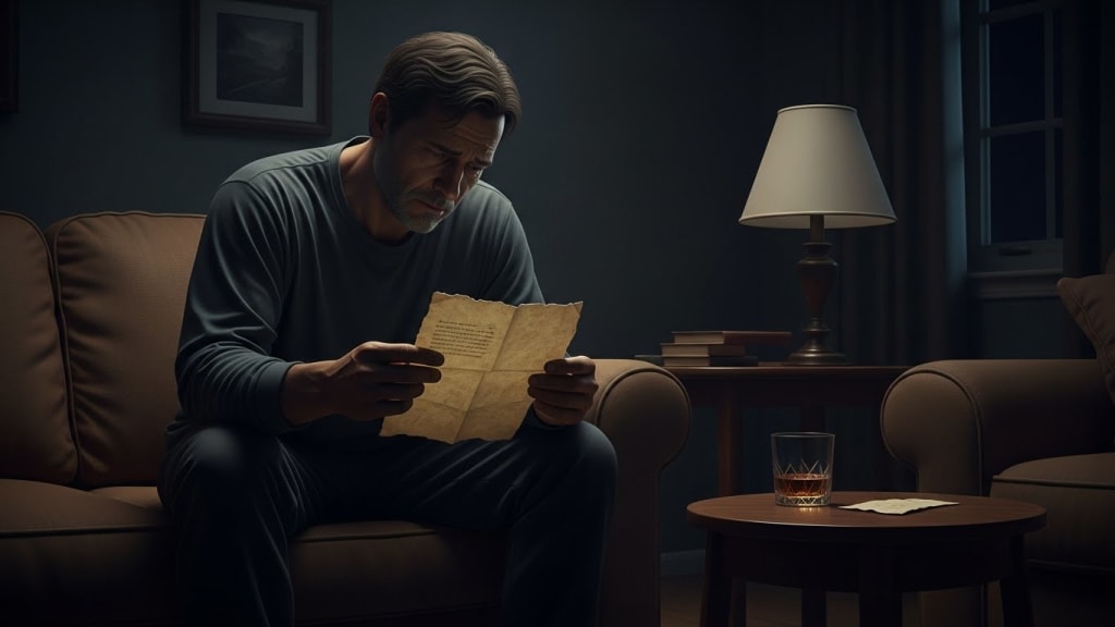 He placed the letter back in the cedar chest, under old photographs he rarely looked at, under the detritus of a life half-lived. The weight of it settled again, familiar, heavy, like an old coat he couldn’t bring himself to discard. He stared at the wall, the faint scent of old paper and dust clinging to his fingers, the quiet stretching, endless, around him.