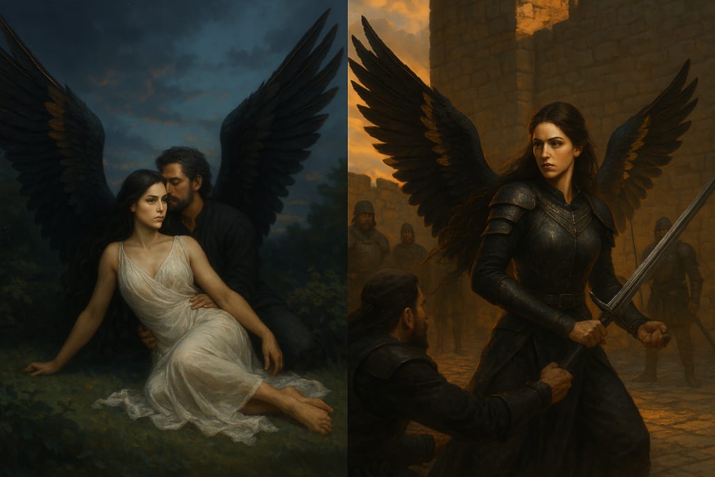Lucy Vanali lay silently in Leufroy's arms, nestled in the garden and watching the endless blue stretch above them. Her dark wings fanned out beneath her, a stark contrast to the flimsy white dress clinging to every curve. His arms were the only comfort she had left. She trusted no one else. Everyone wanted her throne. As much as she longed to disappear with Leufroy to some distant island and live out her days in peace, she had a duty to her people. She was their Queen, whether she liked it or not.