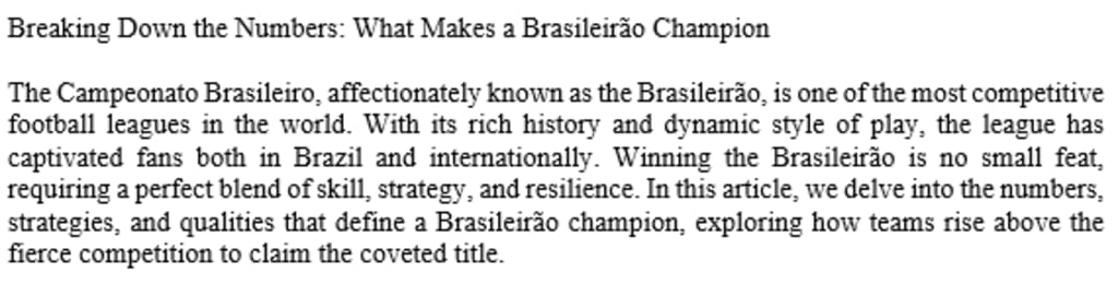 Breaking Down the Numbers: What Makes a Brasileirão Champion