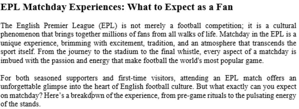The EPL matchday experience stands out for its blend of tradition, passion, and inclusivity. Each club has its own unique rituals and culture, ensuring that no two matchdays are ever the same. Whether it’s Liverpool fans singing "You'll Never Walk Alone" or Newcastle supporters creating a sea of black and white at St James’ Park, these traditions reflect the deep emotional ties between clubs and their communities.