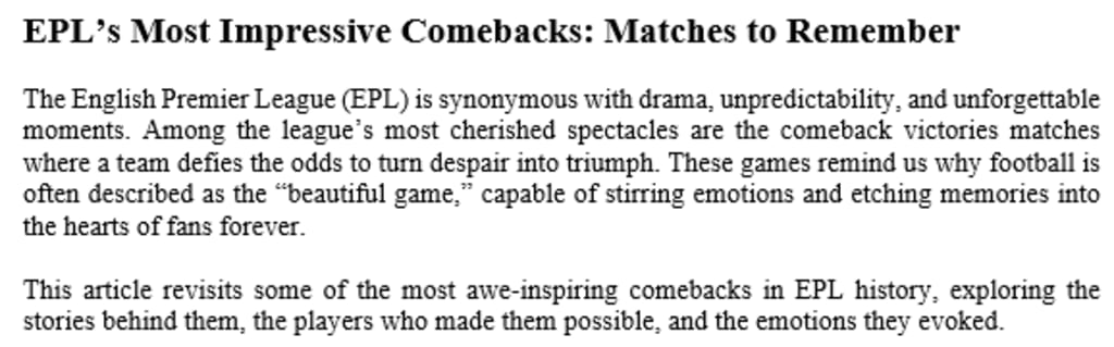 EPL’s Most Impressive Comebacks: Matches to Remember