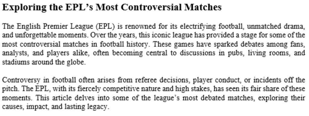 The English Premier League (EPL) is renowned for its electrifying football, unmatched drama, and unforgettable moments. Over the years, this iconic league has provided a stage for some of the most controversial matches in football history. These games have sparked debates among fans, analysts, and players alike, often becoming central to discussions in pubs, living rooms, and stadiums around the globe.
