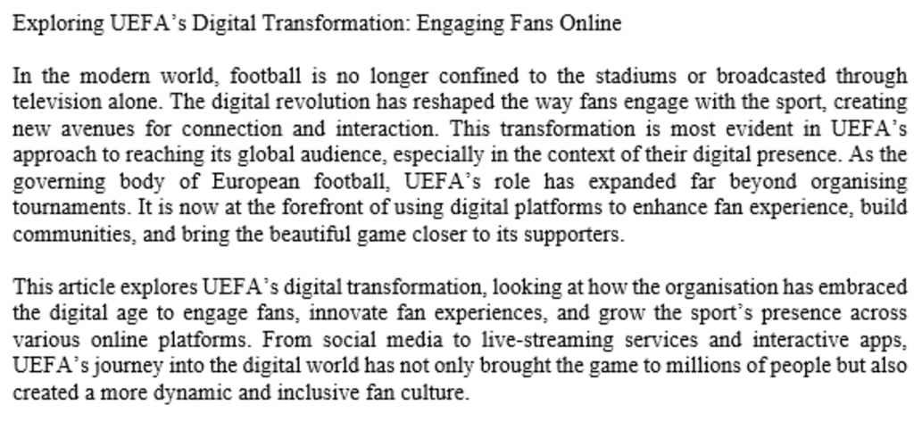 Exploring UEFA’s Digital Transformation: Engaging Fans Online