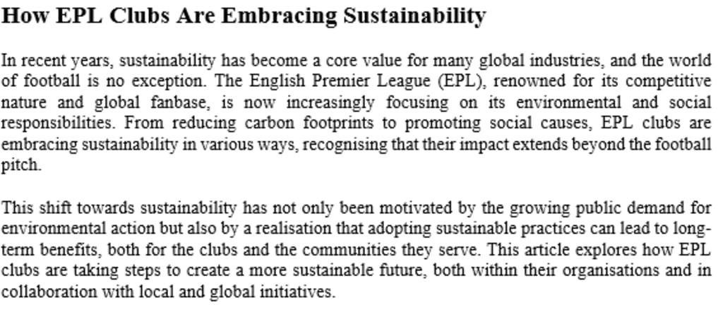 This shift towards sustainability has not only been motivated by the growing public demand for environmental action but also by a realisation that adopting sustainable practices can lead to long-term benefits, both for the clubs and the communities they serve. This article explores how EPL clubs are taking steps to create a more sustainable future, both within their organisations and in collaboration with local and global initiatives.