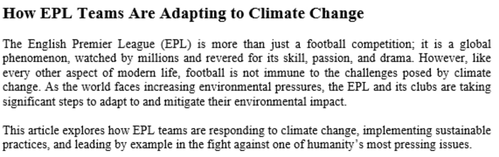The English Premier League (EPL) is more than just a football competition; it is a global phenomenon, watched by millions and revered for its skill, passion, and drama. However, like every other aspect of modern life, football is not immune to the challenges posed by climate change. As the world faces increasing environmental pressures, the EPL and its clubs are taking significant steps to adapt to and mitigate their environmental impact.