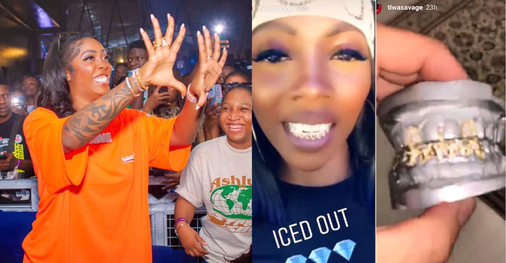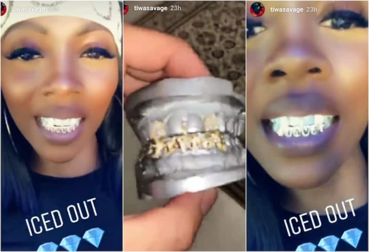 Finally, Tiwa Savage in 2018 bought a set of grills. Diamond encrusted grills for that matter. The grills spell out her name "Savage". The singer took to social media to show off the expensive items and while the price of the item was not widely reported, it is clearly not a cheap purchase.