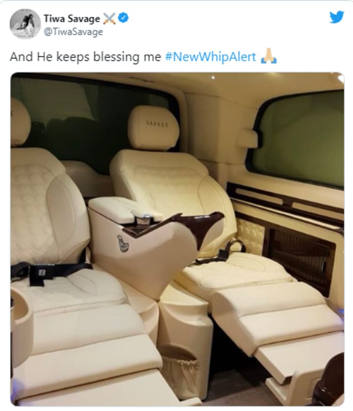 In 2019, Tiwa Savage took to social media to show off her #NewWhip. Media personality Azuka Ogujiuba talking about the purchase said:
