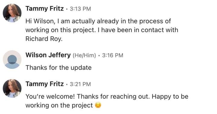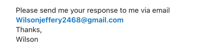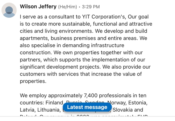 3:11 pm - I receive a message on LinkedIn from a “Wilson Jeffrey”: