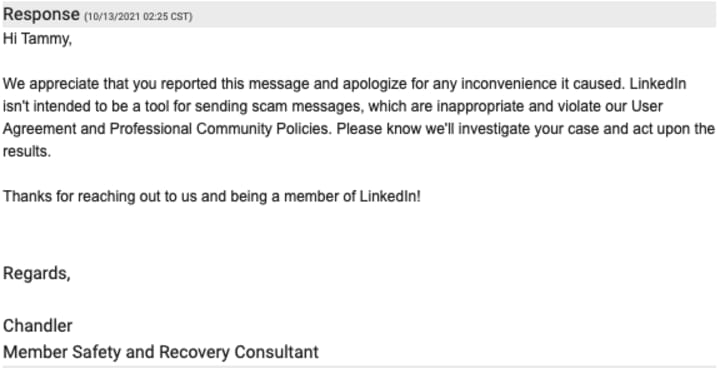 On September 29th, 2021 I received the following message on LinkedIn from "Richard Roy" -