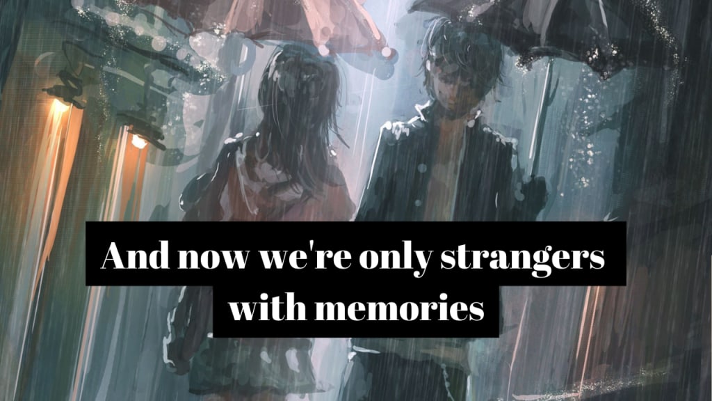 Once again, thank you for everything that you've done for me, you have made me the happiest woman in our short time together. And now we're only strangers with memories.