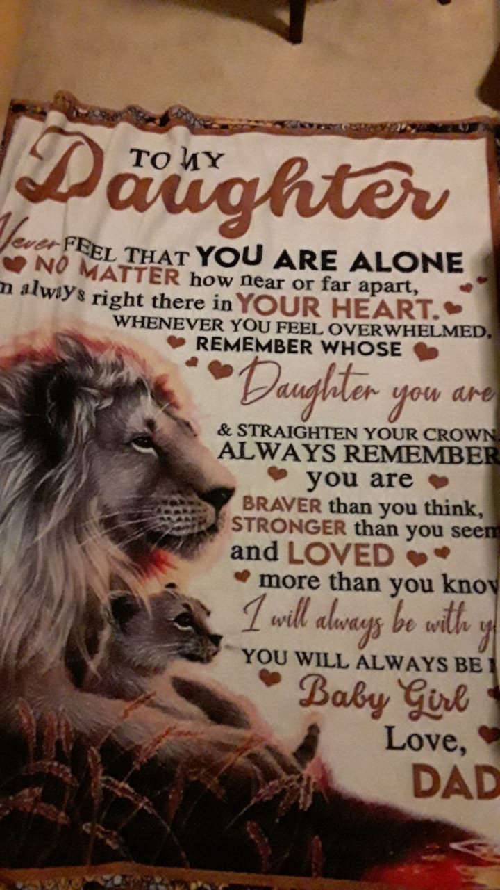 The final birthday gift you gave to me was like an omen. Foreshadowing what the outcome would be for our future. A blanket—but not just any blanket, it had words on it that I’ll forever cherish and never forget. It said “To my daughter, never feel that you are alone. No matter how near or far apart. I am always right there in your heart. Whenever you feel overwhelmed remember whose daughter you are.”