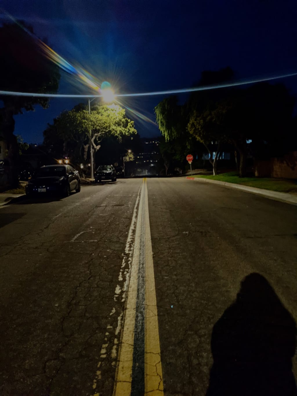 Now, of course, I see distant stars twinkling away, in between the trees of the suburban streets the lights in the distance are play their games.