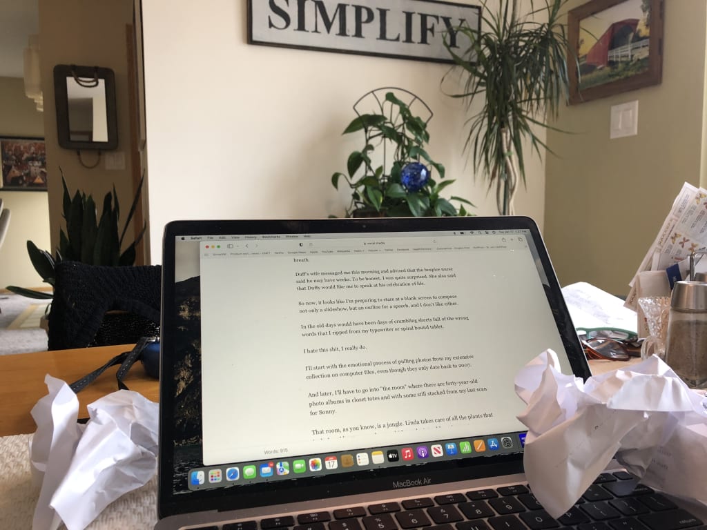 Duff's wife messaged me this morning and advised that the hospice nurse said he may have weeks. To be honest, I was quite surprised. She also said that Duffy would like me to speak at his celebration of life.