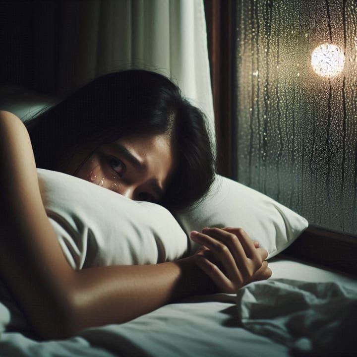 The rain tapped on the window like a nervous confession, but inside her room, the real storm had already passed. What remained were silent echoes and the warmth of a pillow soaked with memories — and tears.