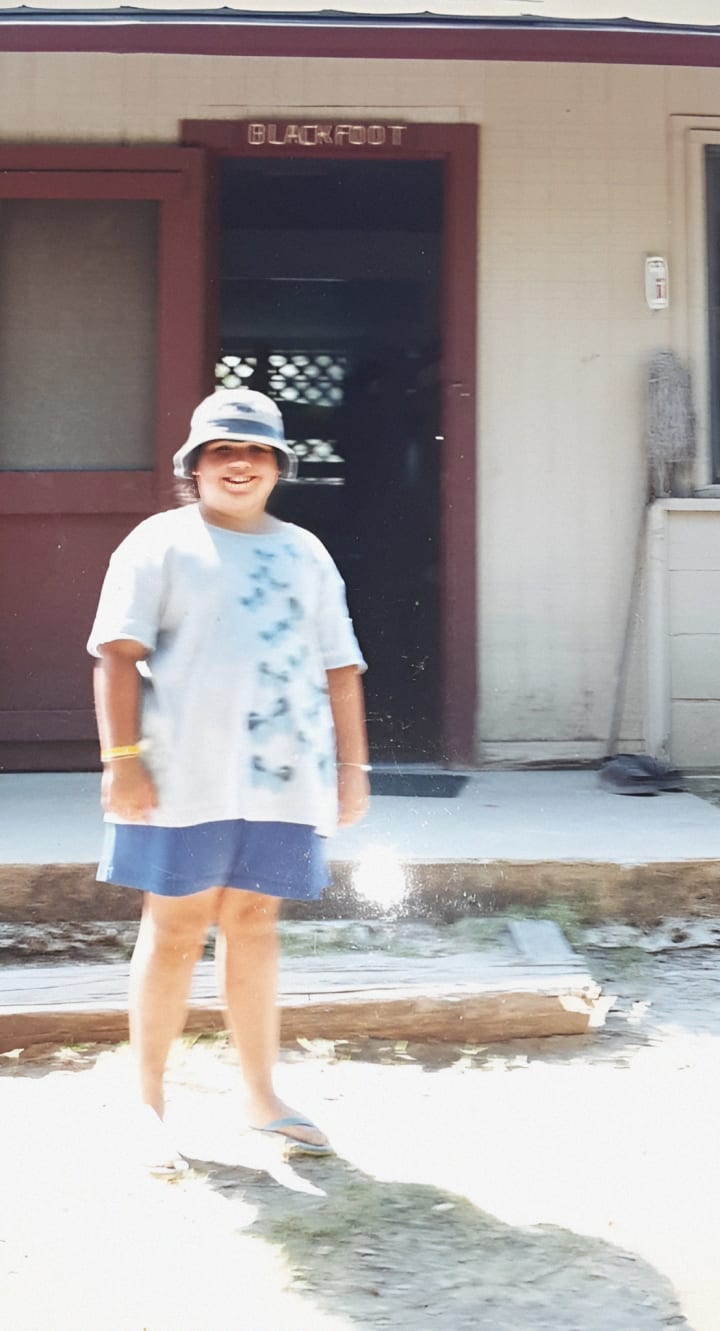 That second Friday, all of us Blackfoot Bear girls were excited about learning how to paddle in a canoe. I was very ecstatic myself. As we all headed down to the docks, everyone was grabbing life jackets. I picked the one that had the butterfly sticker. I loved butterflies back then, and I pretty much still do. Immediately I was stopped by Martha who told me in front of several cabin peers that I was too large for the girls' canoes, and I was to walk over to the boys side and join them instead. I was appalled by what Martha had said to me. I really wanted to say something back, but the last time someone spoke their mind to a cabin counselor they got horse stable duty. Emphasis on the duty… So, I kept my mouth shut and went over to the boy's side.