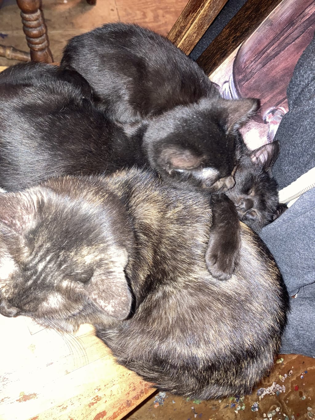 Most of them, when I had them were found as TINY kittens, who still needed to be bottle-fed. I have a long history of helping with rescue animals, down to my childhood, so I didn't feel all that much pressure. I'd bottlefeed these kittens and raise them up old enough, and by then I didn't feel the need to rehome them because I was bonded with them.