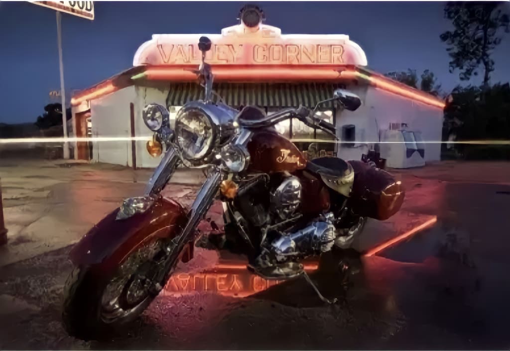 I watched her slight figure recede in the bike’s mirrors for a minute before opening up the Indian’s 1700cc engine and hitting the open road, racing the dawn, but that’s a race the dawn will always win.