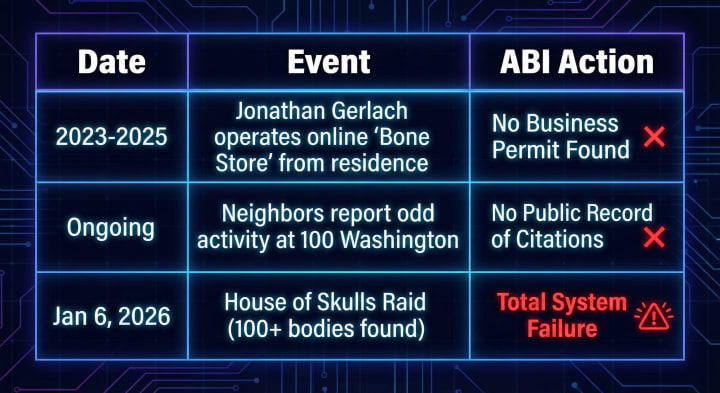 - The "Home Occupation" Violation: Gerlach was not just living there; he was running a global shipping logistics center for human remains. As the property owner, he was legally required to secure a Home Occupation Permit and pass a zoning check. Did he file? If not, how did a business of this scale operate for years without a single zoning citation?