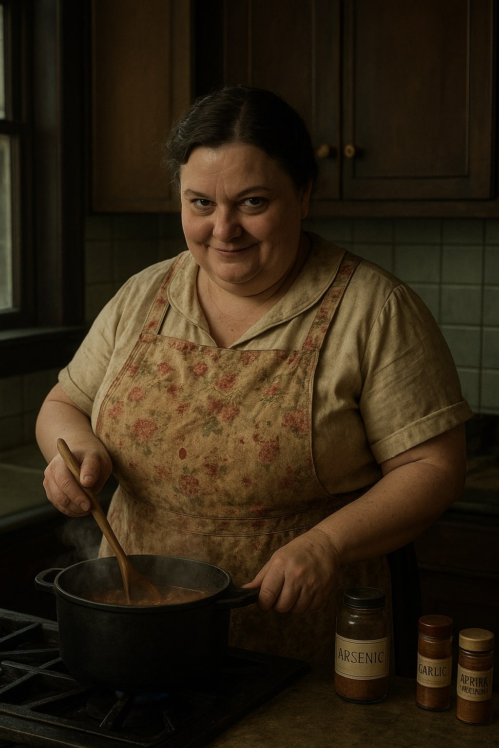 The neighborhood lived in terror. Tilly would stand on her porch, smiling sweetly. "Lovely weather we're having," she'd comment, while mentally calculating which neighbor would taste her special recipe next.