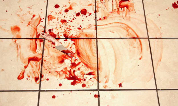 “I-“ was all he could splutter before his body numbly hit the tiles, his limbs splayed and his eyes stared coldly at the kitchen ceiling.