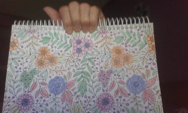 Here is a picture of a Marten up a tree or pinecones and flowers. I used my crayons with shades of blue primarily along with pink, orange, reds, greens, and black for a little contrast. The tree and pinecones I colored using brown and burnt sienna. The flowers I chose red with a little orange tint. The while background I shaded in sky blue surrounding the whole image of the Marten.