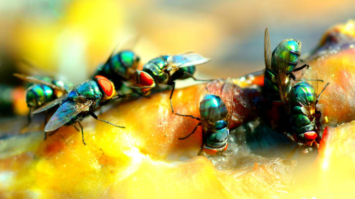 House flies are well-known for their voracious appetites. What many people don't realize is that these little creatures also enjoy poop! House flies, according to experts, defecate every time they land, even if it's on their next meal. Gross!