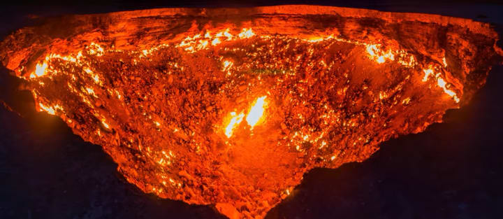In 1971, there was an accident as engineers were setting up an oil-drilling rig on the site. The ground beneath the rig collapsed into a wide crater which started releasing potentially poisonous gas into the air.
