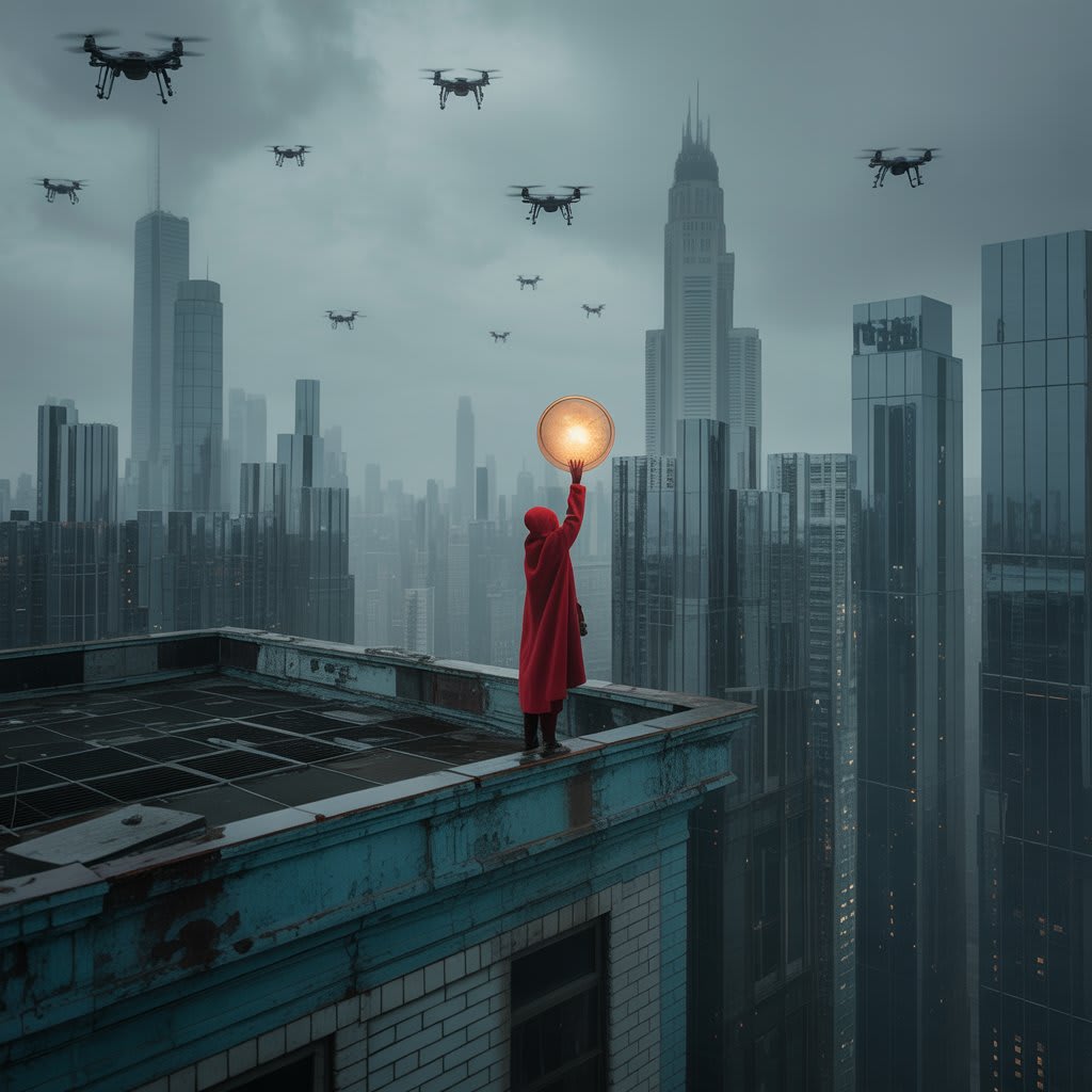 The closer they got to the Tower, the heavier the drones. The streets were empty. Cameras blinked like artificial eyes. Once, they saw a man get vaporized by a Strike Sentinel just for stepping outside curfew.