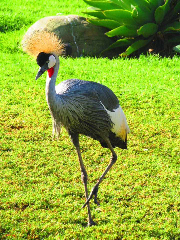 As we walked along the trail and above the colorful, blossoming plants and towering trees, a suspended, mesh net hovered above us and all the other visitors. Although this transparent shield prevented the exotic birds from escaping the aviary, it was mostly put in place to help the beautiful birds from falling prey to the wildness that is the Africa countryside.