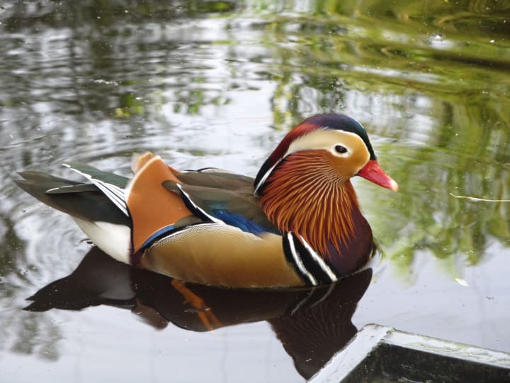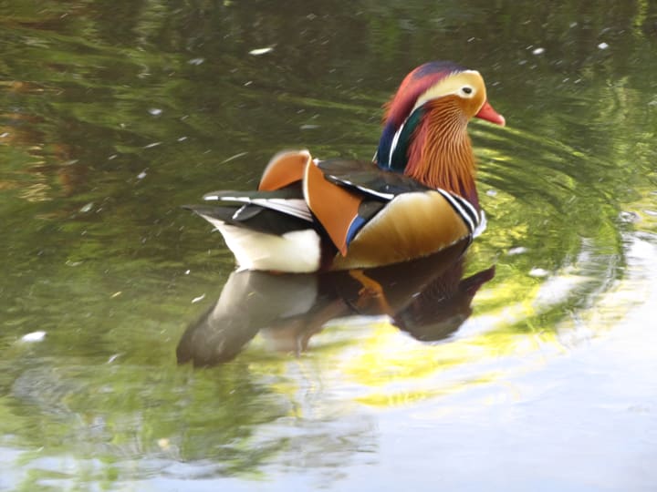 With a few fine lustrous strokes, a gifted painter had imagined the Mandarin duck. The bird, with its greenish-black forehead, chestnut patches, and puffed-out purple chest, is one of nature's most stunning creatures.