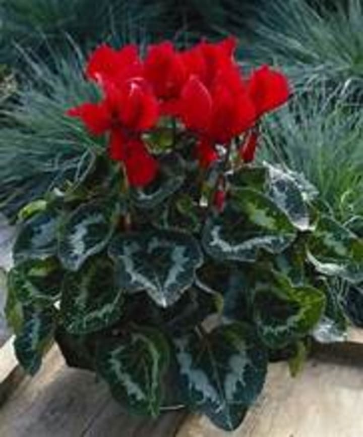 The vivid red cyclamen is a popular Christmas plant. It is a winter flower that provides holiday cheer. This indoor plant can be purchased in the autumn and winter and will bloom inside. As the outside temperatures rise the plant goes dormant until next autumn. Once it stops blooming, store it, and plant it again the following autumn season, and it will bloom again.