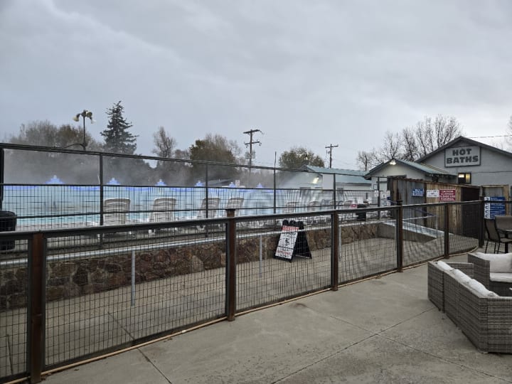 Driving into the town, I could see the steam rising up into the air from several spots around me, especially in the chillier November weather. Once checked in, I quickly changed into my bathing suit and darted across the cold parking lot to the spring, which was being directed into a soaking pool structure.