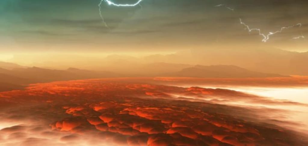In this regard, if Venus is outside our solar system, it probably won't attract much attention. Its skies are filled with thick clouds of sulfuric acid (dangerous to humans), the land is desolate and full of extinct volcanoes, and 90 percent of the surface is covered in fiery lava flows.