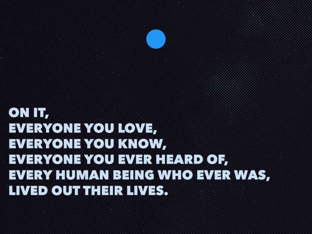 Then again, what do I know? I am just eighteen, but a little aware of the fact that our very little planet has a significance as vast at the universe. There might be a billion more universes that we are alien to, and in them, there might be a billion more pale blue dots, but there is just one home that we know of. One little rebel standing strong in the solar system, one little exception boasting of life. Once again, I am eighteen, and for all I know there probably is a chance that in some galaxy far, far away there exists a planet waiting for us to call it home. For all I know, we do have an escape waiting for us far beyond the reach of this atmosphere.
