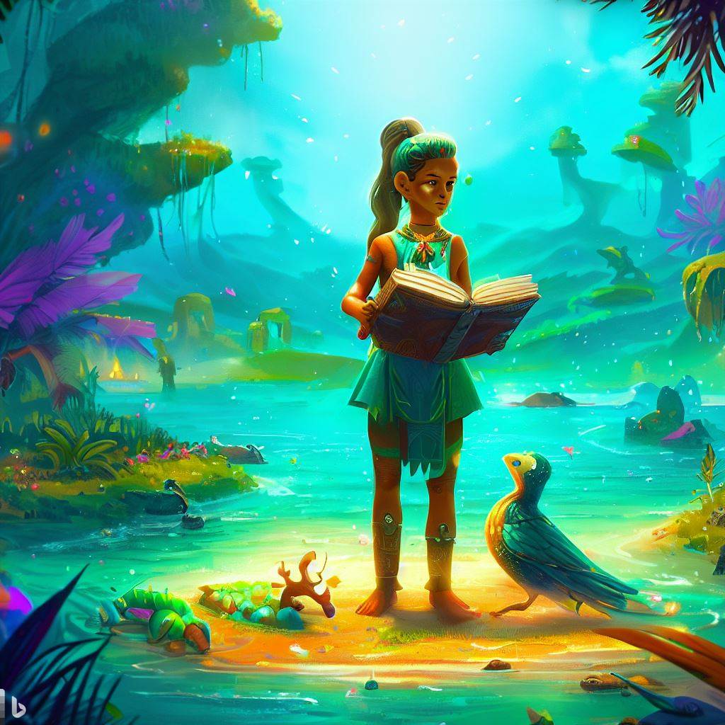 Maya found herself standing on a lush, vibrant island surrounded by sparkling turquoise waters. The island was inhabited by extraordinary creatures and inhabited by people dressed in elaborate, ancient attire. It became clear that she had stumbled upon a world untouched by time.