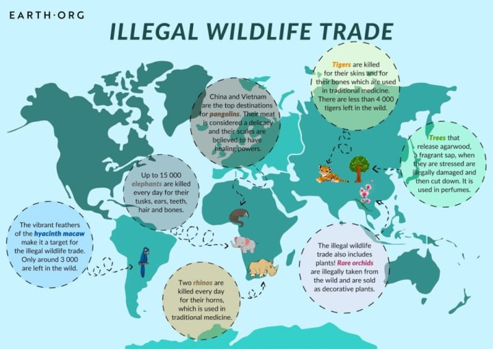 The demand for animal parts such as tiger skin, elephant tusks, rhino horns, and pangolin scales has led to rampant poaching. India is both a source and a transit point for illegal wildlife trade, which is the fourth-largest illegal trade globally.