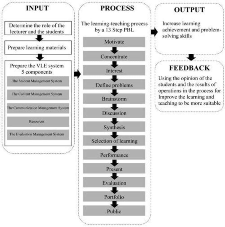 The course was built around the Problem-Based Learning via Virtual Learning Environment model, which involved four main components – input, process, output, and feedback.